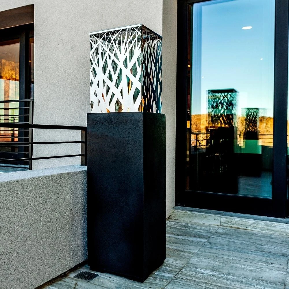 - Free Standing Contemporary Fire Lantern for Outdoor Use