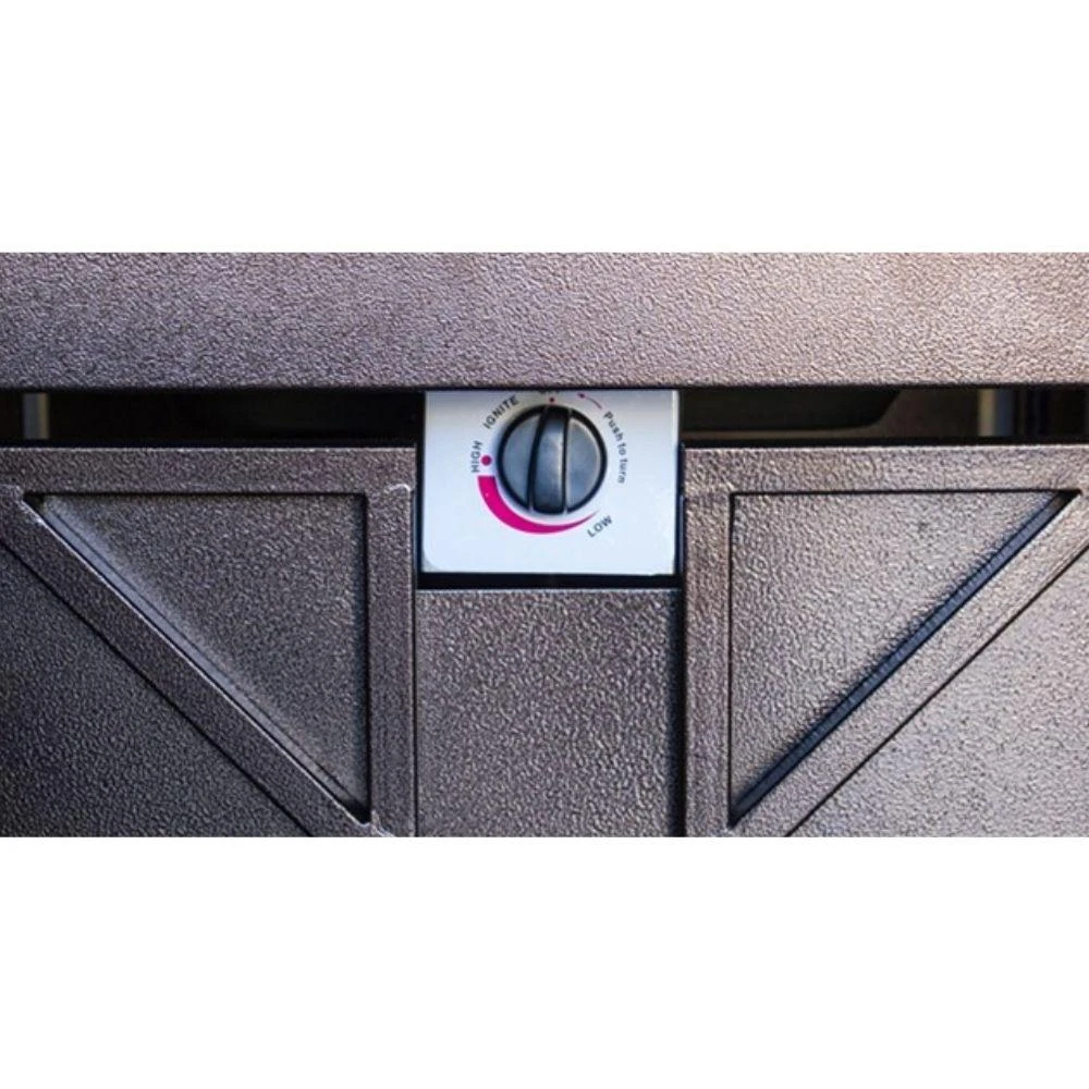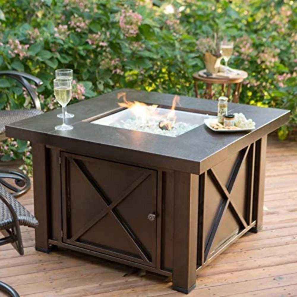AZ Patio Heaters Decorative Hammered Bronze 38″ Square Gas Fire Pit Table is the perfect choice for any outdoor setting and will be the focal point of your entertaining area. Clear fire glass covers the burner and adds a touch of elegance. The solid steel construction is incredibly durable and the hammered bronze finish gives it a rustic look that suits outdoor living. With the cover in place, this Fire Pit table can also be used as a conventional table.