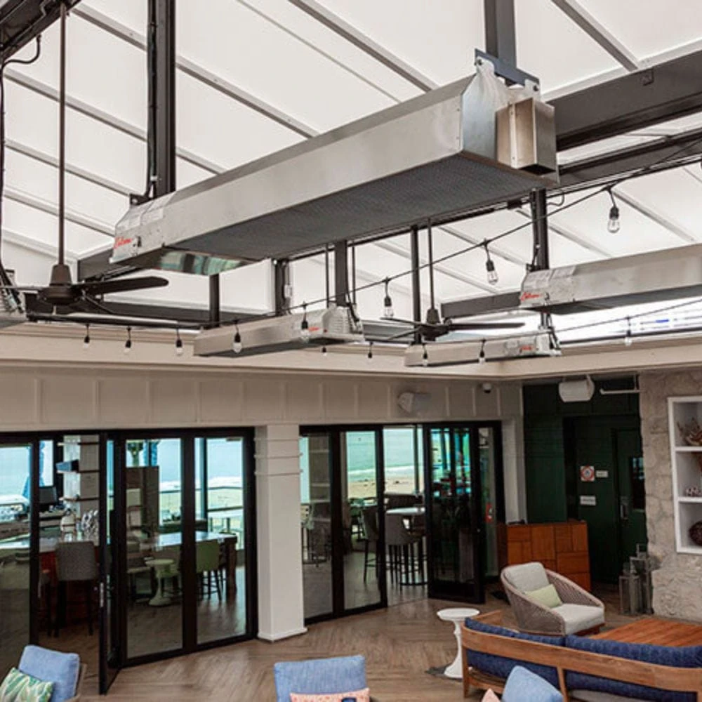 With a modulating control panel, you can easily adjust the heat outdoors. It can be installed with your own mounting accessory for pole, ceiling, or wall mounts. installation. Optional mounting kits are also available for ceiling or wall mounting.