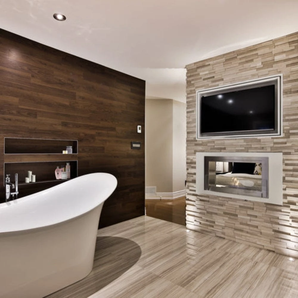 A Modern See-Through Free Standing/Built-in Ethanol Fireplace