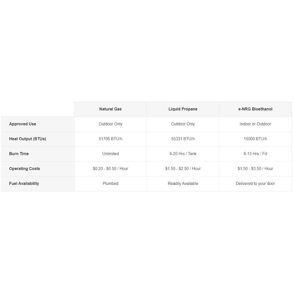 - Triple Fuel Advantage: Natural Gas, Propane, or Ethanol to suit any space