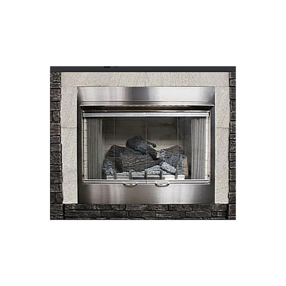 This bi-fold glass door is supported by a stainless steel frame that enhances the fireplace’s display even further. Since it is made of glass and stainless steel, this door will last many years of outdoor use.