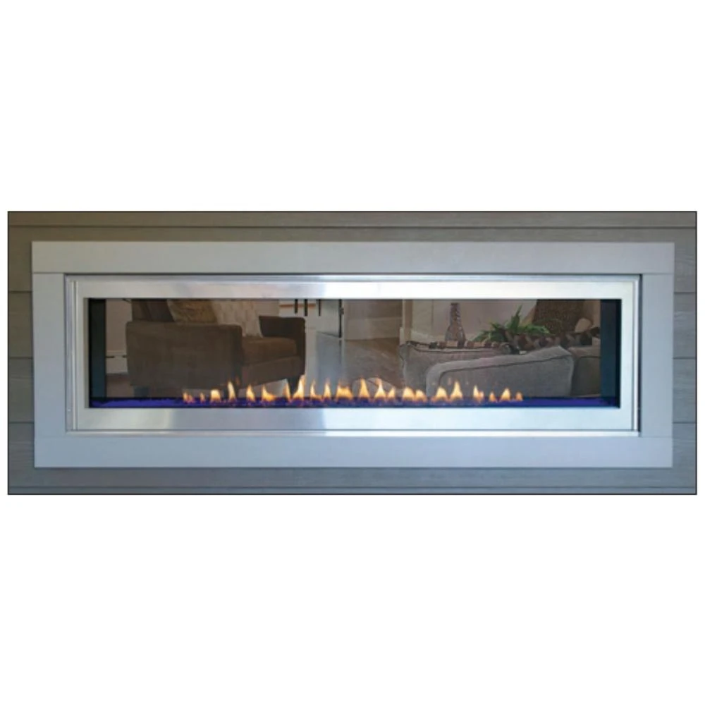 Enjoy the warmth inside and the outdoor view by installing your 60″ Boulevard See-Through Fireplace with this aesthetically pleasing and functional Empire Exterior Wall Frame Kit.