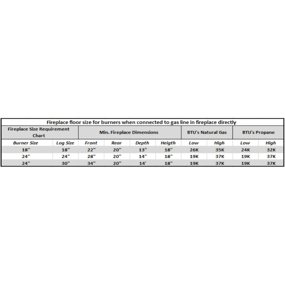 Available in standard sizes, 18″, 24″, or 30″ long, this indoor gas log set is a great addition to any indoor residential or commercial space. Enjoy the warmth and ambiance of a fireplace without the hassle!