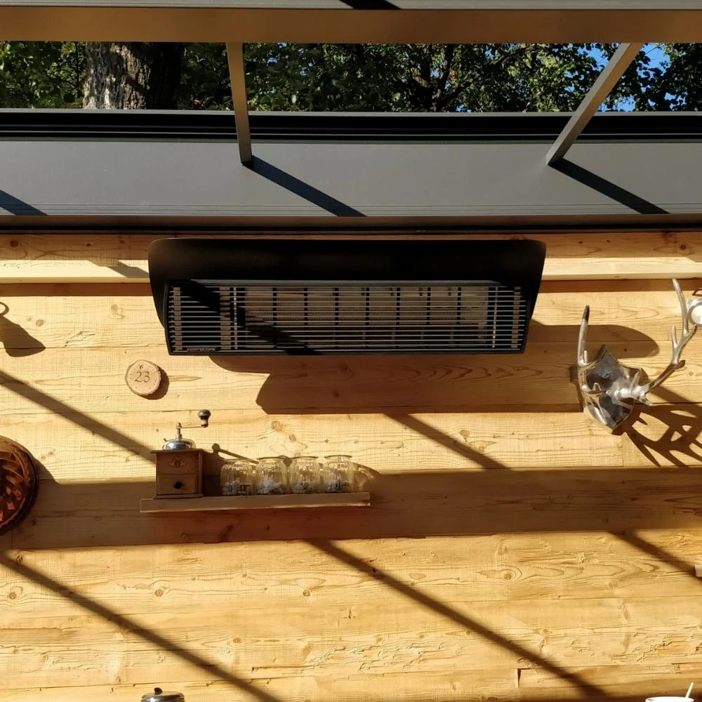 Your heater can withstand the occasional water splash, but it cannot really get wet. This weather shield is a solution to that problem. The Heatscope Weather Shield allows you to install a Heatscope IP24 electric heater in open or unprotected outdoor areas. With it, you can install the heater where covering is not possible.