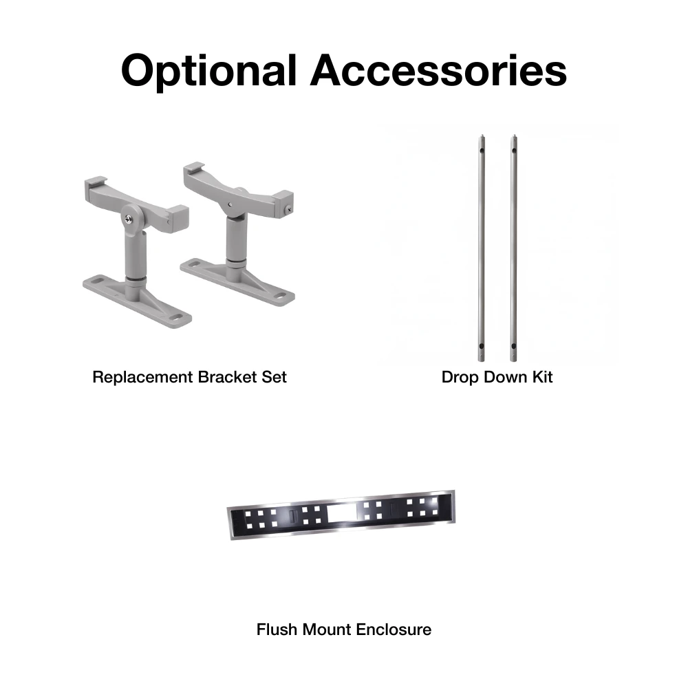 Optional Add-Ons: Switch, Relay, Switch Kits, Remote Control, Bracket Set, Drop Down Kits, and Flush Mount Enclosure