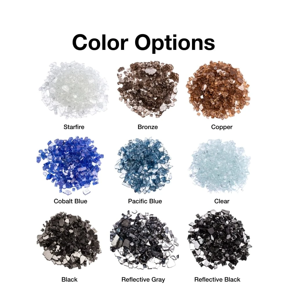 HPC Fire Glass is the perfect accessory for elevating the look of their gas fire pits and improving burner efficiency. With a selection of 10 stunning colors to choose from, including Cobalt Blue, Pacific Blue, Black, Clear, Starfire, Copper, Bronze, Reflective Pacific Blue, Reflective Gray, and Reflective Black, you can customize your fire pit to match your unique style. See your fire pit manual to learn how much fire glass is required.