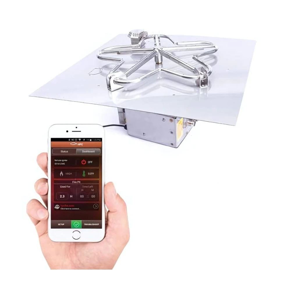 Constructed from 304 Stainless Steel and featuring a raised hub, this insert is built to last, resisting corrosion and mitigating water to enhance longevity. The hi/lo ignition system, operable through Bluetooth controls on an app, adds a layer of convenience, allowing you to effortlessly manage the ambiance of your gatherings.