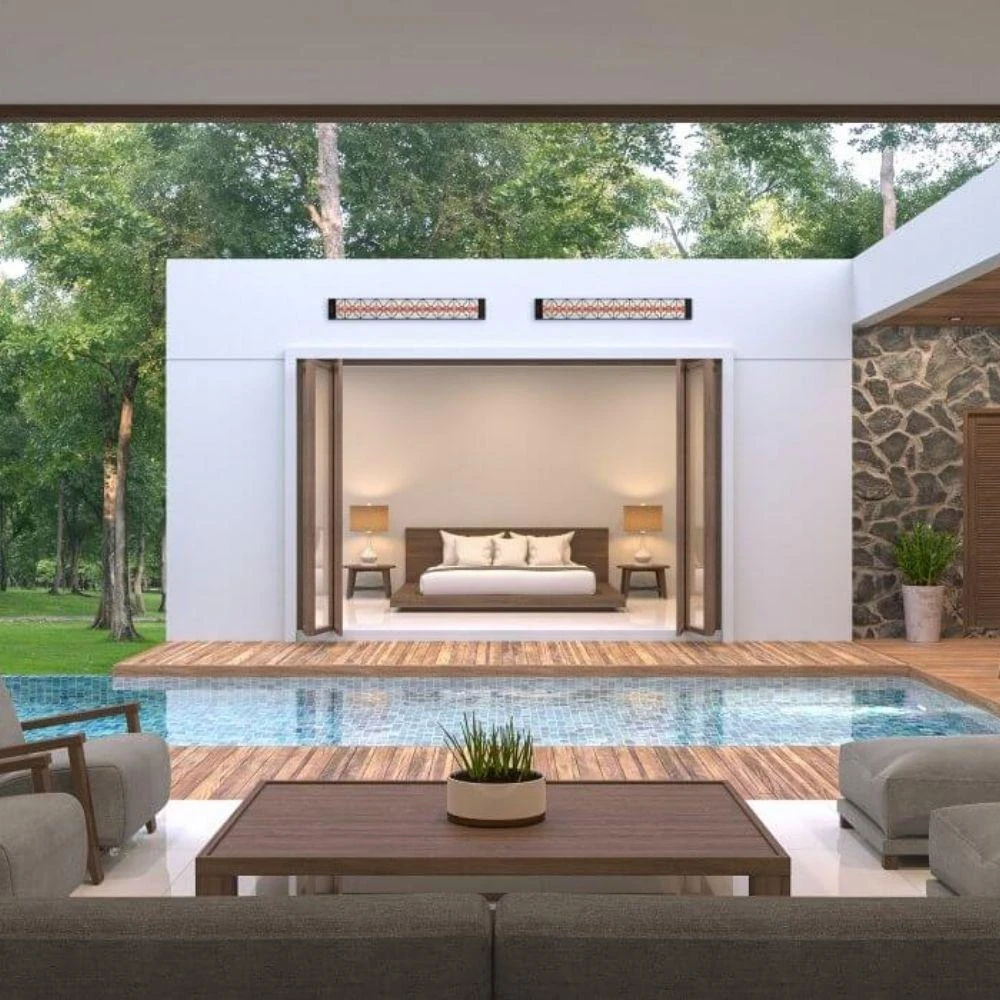 With its curved design, it has a sleek look for any indoor or outdoor setting. Wall or Ceiling Mounted Installation gives it a floating appearance as the mounting brackets are designed to hide behind it. You can flush it to the ceiling for a seamless look with an optional flush mount frame like the W Series. If you want to know the difference between the C and W series, here is an Infratech C and W Comparison.