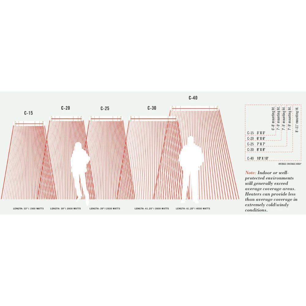 The Infratech C Series 39″ Single Element Infrared Electric Heater is a modern, efficient, and stylish heater designed to look great or blend with its surroundings. This heater is best for pole, wall, and ceiling mounting, but it can also be flush-mounted. Available in 4 voltage options and 8 custom colors, this electric patio heater is suited for any space.