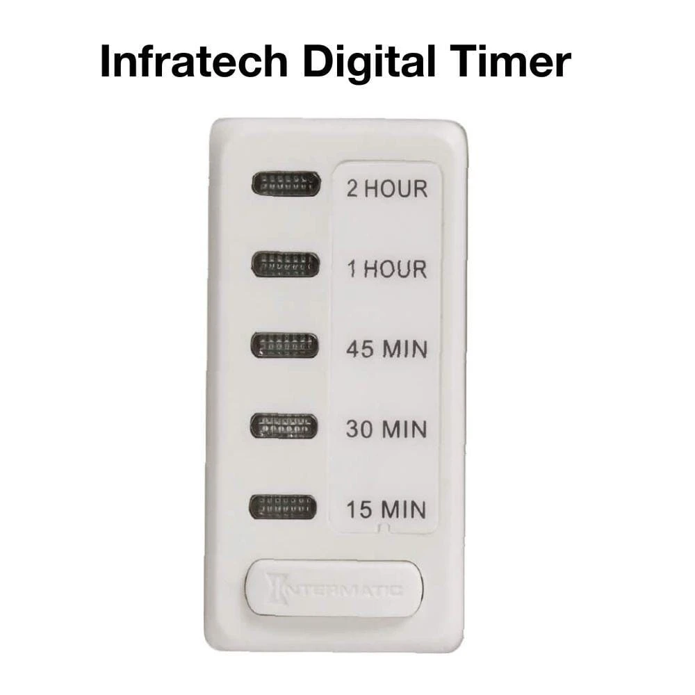 This contactor panel is designed for use with all Infratech heaters, single or dual element. The timer function allows the user to control the on/off cycle of any heater and maintain a consistent temperature throughout the day by turning it off during non-use hours.
