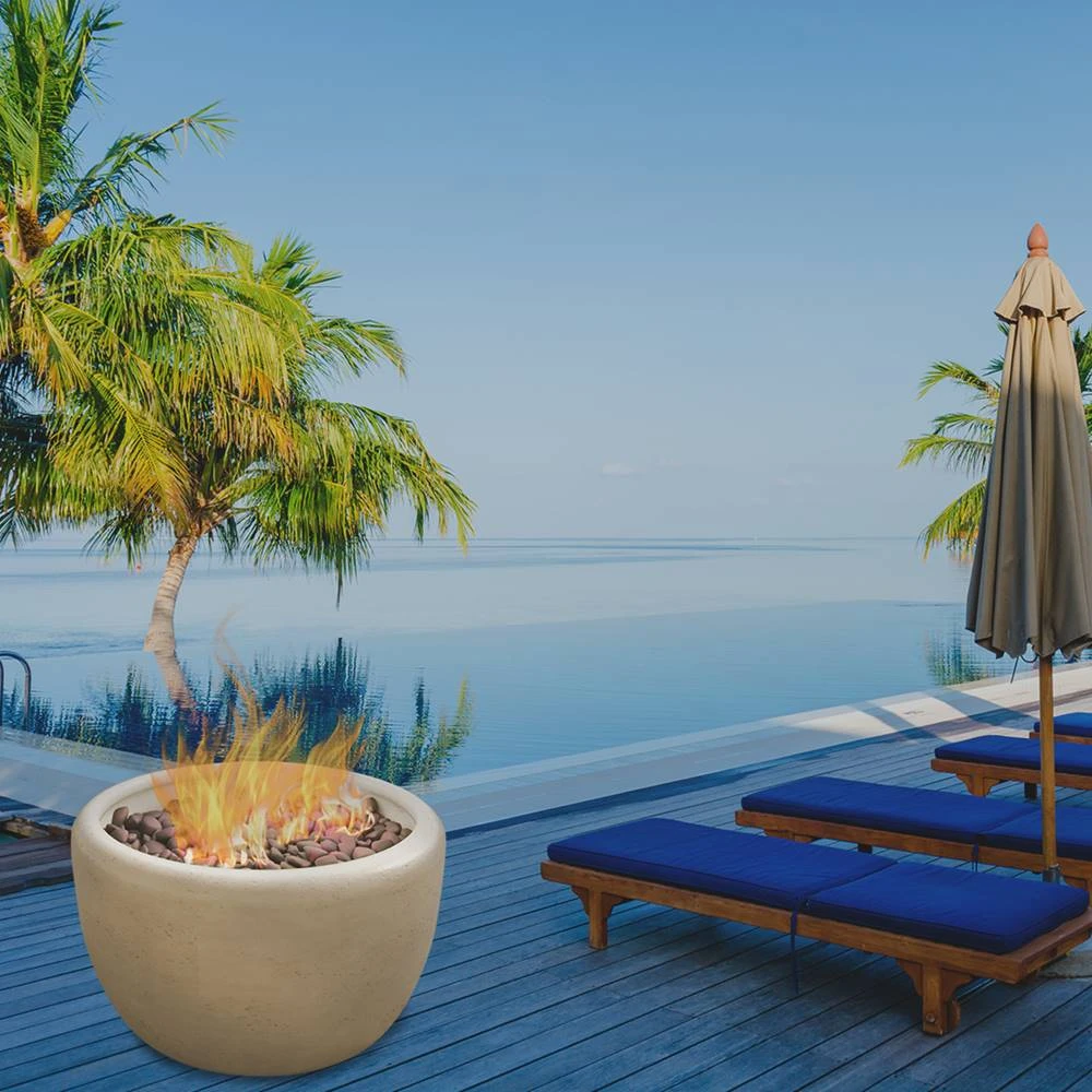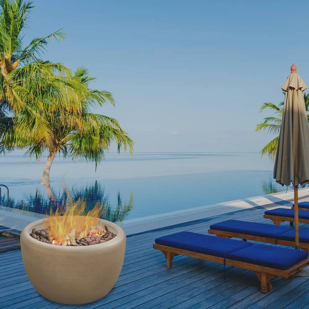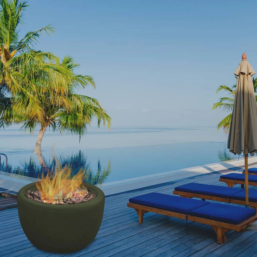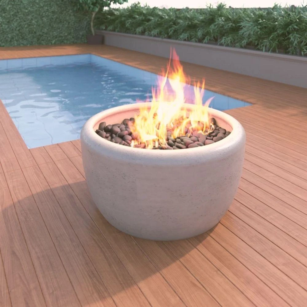 - Round Concrete Fire Bowl complements modern patios and adds warmth.