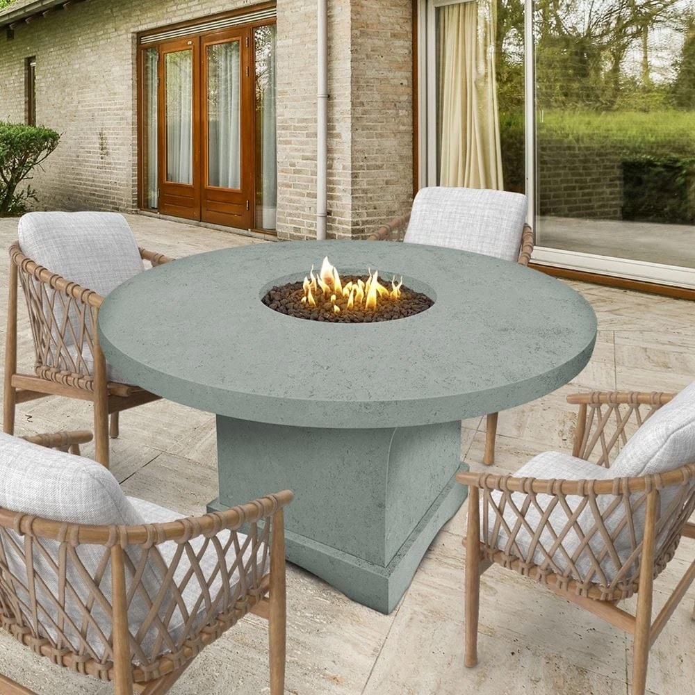 The Modern Blaze Mt. Lassen Round Fire Pit Table is the solution for every patio gathering to have a warm ambiance. This beautifully designed fire pit table is just the right size for intimate gatherings, comfortably seating 4-6 people around its circular shape. Crafted with stylish and durable reinforced concrete, it’s available in 7 beautiful finishes, ensuring a perfect match with any decor scheme.