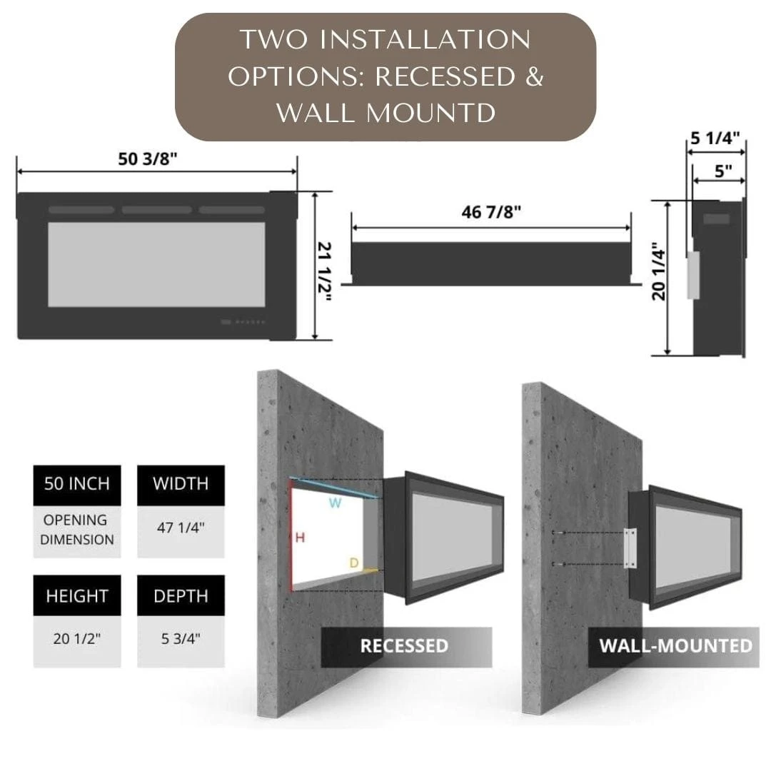 What’s Included: Electric Fireplace, Log Set, Decorative Crystals, Remote Control, Mounting Hardware, and User’s Manual