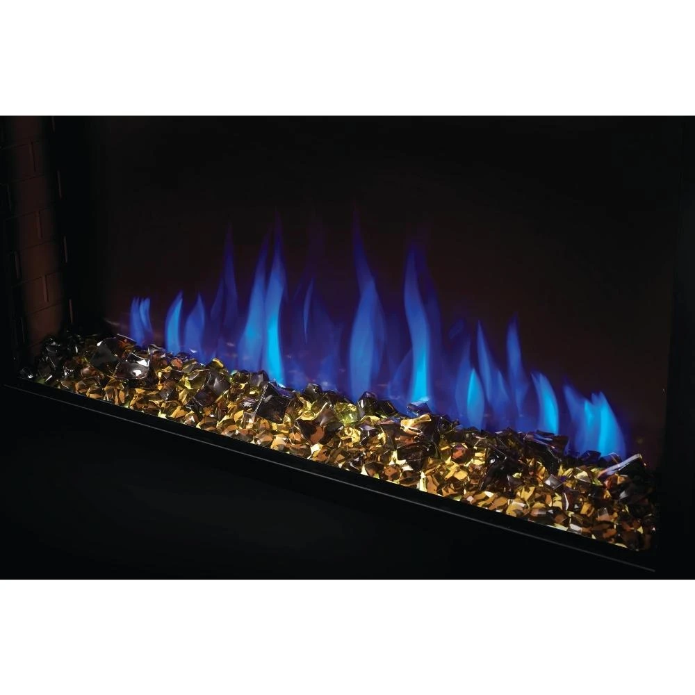 Enjoy orange, blue, or the combination of orange and blue flames. Combine the flame with seven ember bed colors, you can have an eye-catching display of lights that enhance the decorative media. Cineview™ comes with a realistic burnt oak log set on a bed of black crystal media.