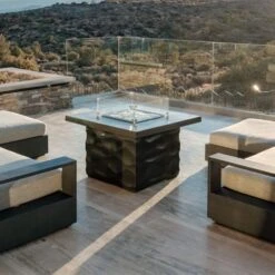 American Fyre Designs Cosmopolitan 60-Inch “Reclaimed Wood” Square Gas Fire Pit Dining Table