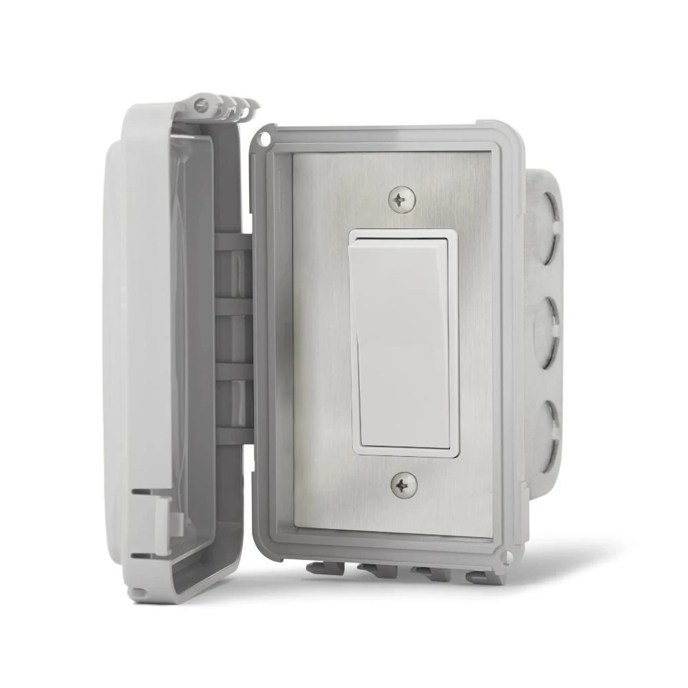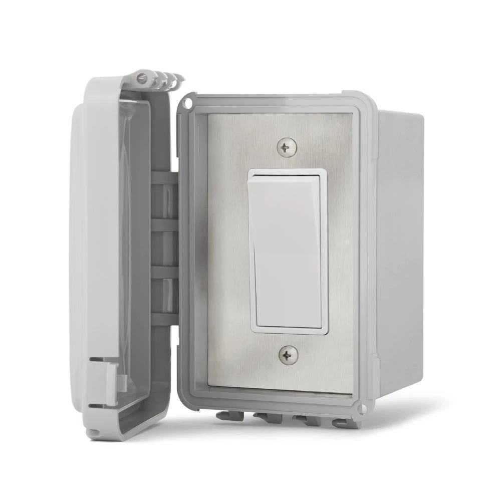 A selection of switches is available. Choose a switch based on how and where it will be installed, in-wall or surface mount. For indoor and outdoor protected areas, a weatherproof cover is not needed.