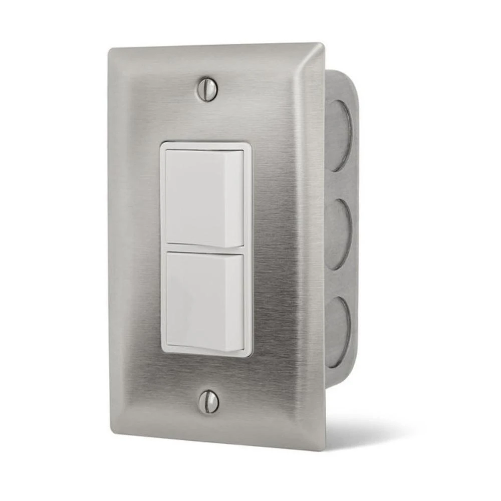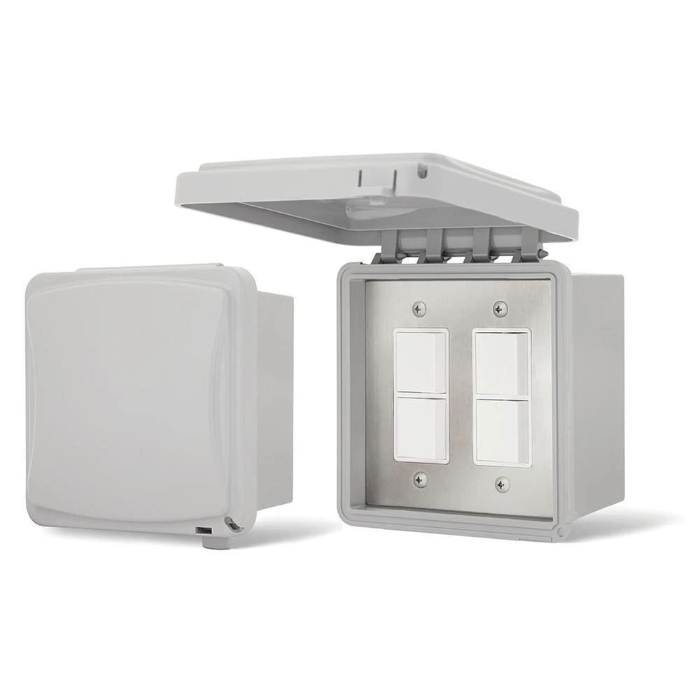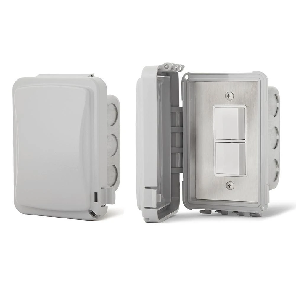 Choose a two stage control switch based on how and where it will be installed, in-wall or surface mount. If installing indoors and in outdoor protected areas, a weatherproof cover is not needed.