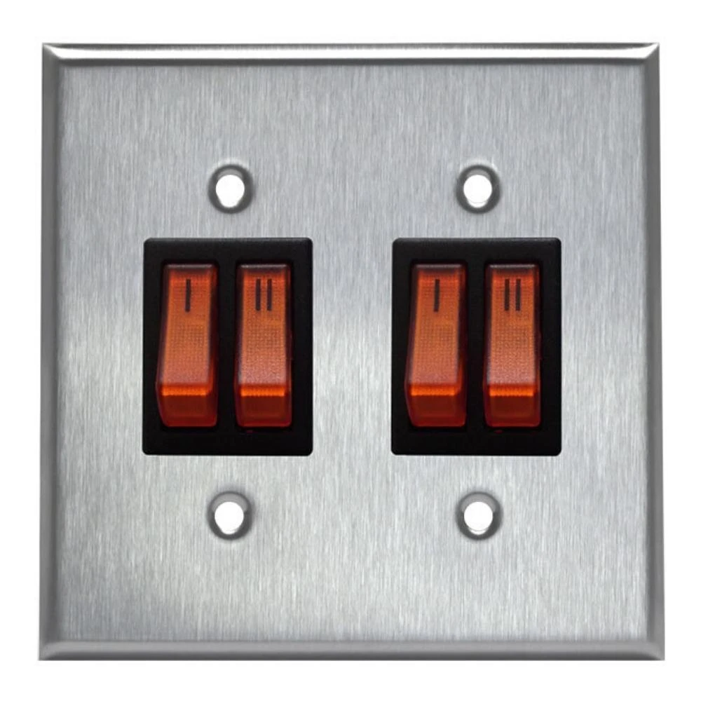 Schwank Two Stage Control Switch is required to control your bistroSchwank and supremeSchwank two stage heaters. Turn them on or off by flipping a switch. Control your heaters even in the dark with this illuminated switch gang. Available in single, double, and triple switch gangs. More switches are needed to control more than 3 zones or 12 heaters.