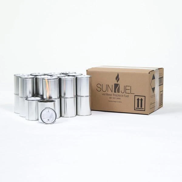 SunJel gel fireplace fuel is the cleanest burning gel fuel on the market. Suitable for both indoor and outdoor gel fireplaces. Simply drop a can in any gel fuel fireplace, fire bowl or lantern, light it, and enjoy hours of warmth. Each can produce a 7-inch flame that looks and crackles like the flames of a wood fireplace. Each can burns bright for up to 3 hours, offering the long-lasting warmth of a wood fire, without the mess.
