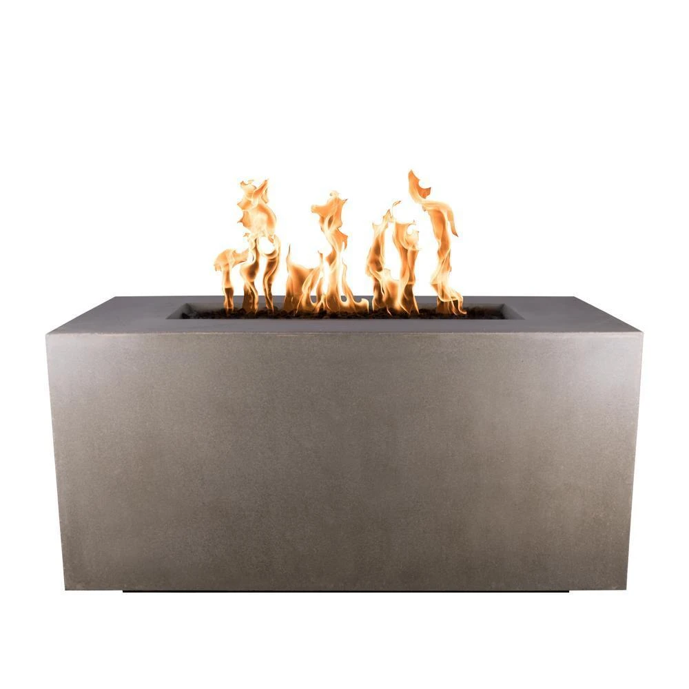 This fire feature has a simple rectangular build made of Glass Fiber Reinforced Concrete (GFRC), a more durable material. Nothing beats the elegance of its simplicity, making it ideal for any residential or commercial project. It comes in 9 solid colors, 4 rustic finishes, and 5 metallic finishes. Choose a color that perfectly matches your space and personalize it with optional fire glass, ornaments, or lava rocks to make it your own.