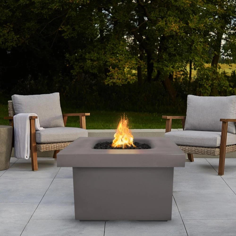 Top Fires Ramona is an elegant contemporary fire pit handcrafted in Southern California by the craftsmen at The Outdoor Plus company. It has a lovely square shape with a round burn area at the center. Compared to other brands, you can match your decor better with much more color choices- 9 different solid colors, 4 rustic finishes, and 5 metallic finishes. Made of Glass Fiber Reinforced Concrete (GFRC), this fire pit is built to last.