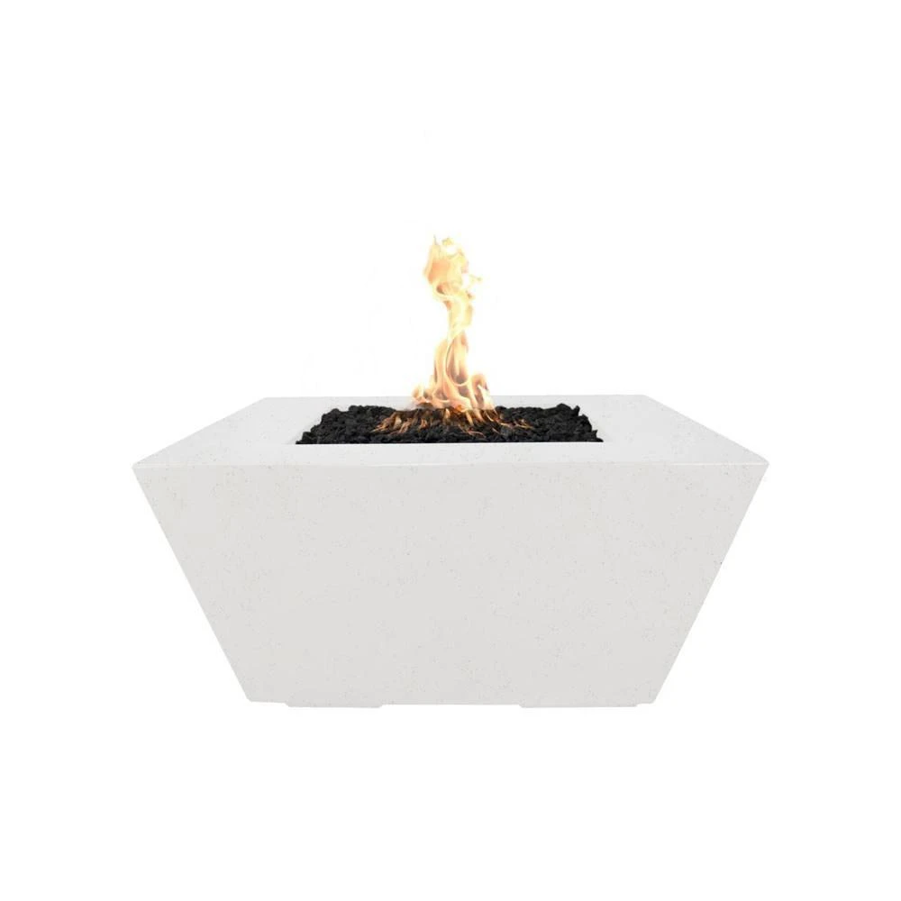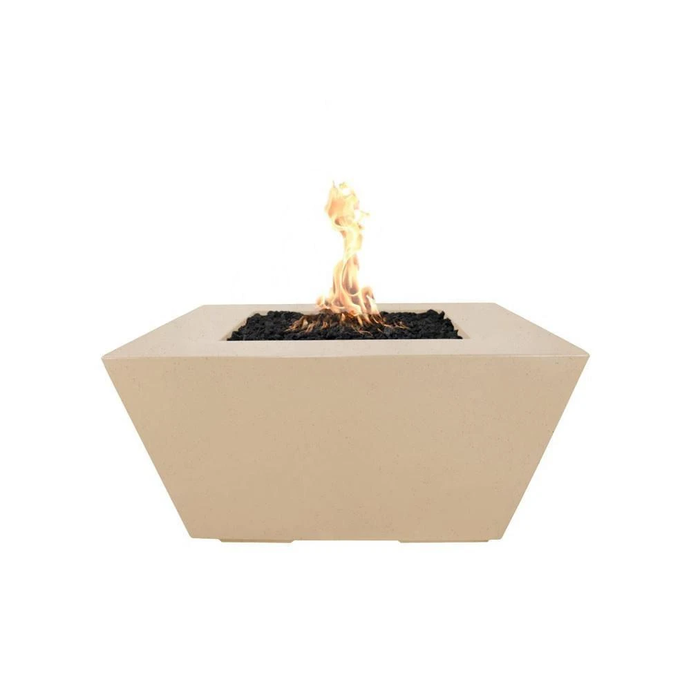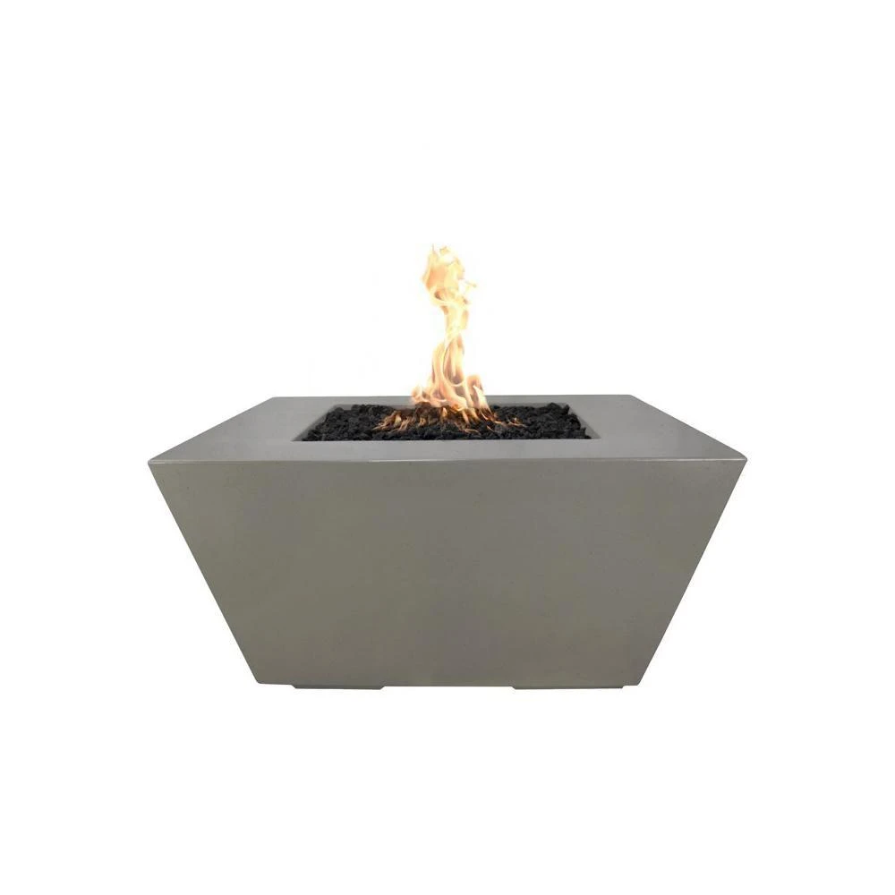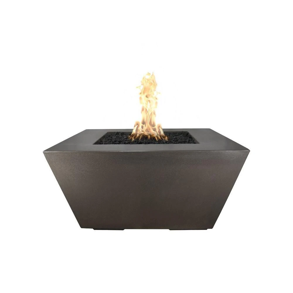 This fire feature has a simple square build made of Glass Fiber Reinforced Concrete (GFRC), a more durable material. Its straightforward design is what makes it so elegant. It comes in 9 solid colors, 4 rustic finishes, and 5 metallic finishes. Choose a color that perfectly matches your space and personalize it with optional fire glass, ornaments, or lava rocks to make it your own.