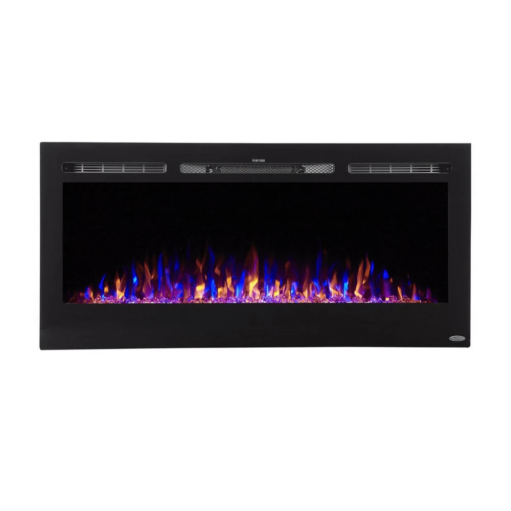 Touchstone Sideline 40-Inch Recessed Smart Electric Fireplace is the perfect solution. This electric fireplace is easy to install- you just need to drill two small holes in your wall for the air vent and power cord. Plus, it doesn’t produce any smoke or fumes, so you don’t have to worry about ventilation. The built-in remote control makes it easy to adjust all the functions of the fireplace, so you can customize the flame to match your mood and decor.