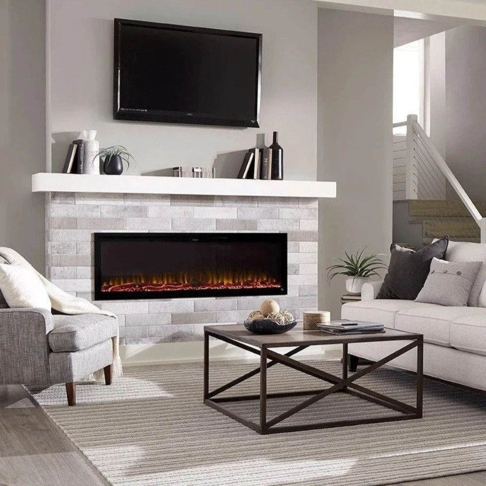 What’s Included: Electric Fireplace, Driftwood Logs and Crystals, Media Tray, Remote Control, Mounting Hardware, and User’s Manual
